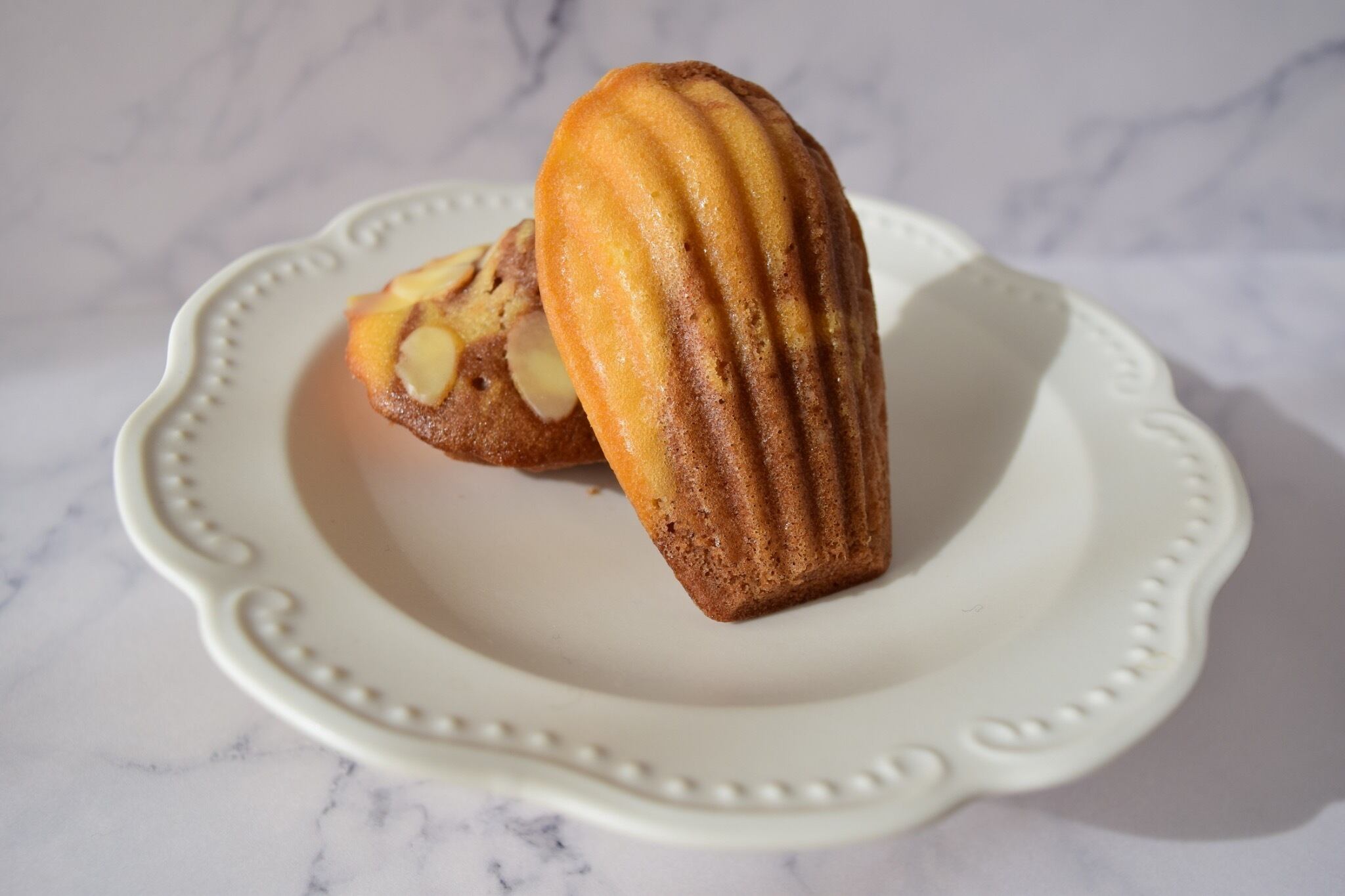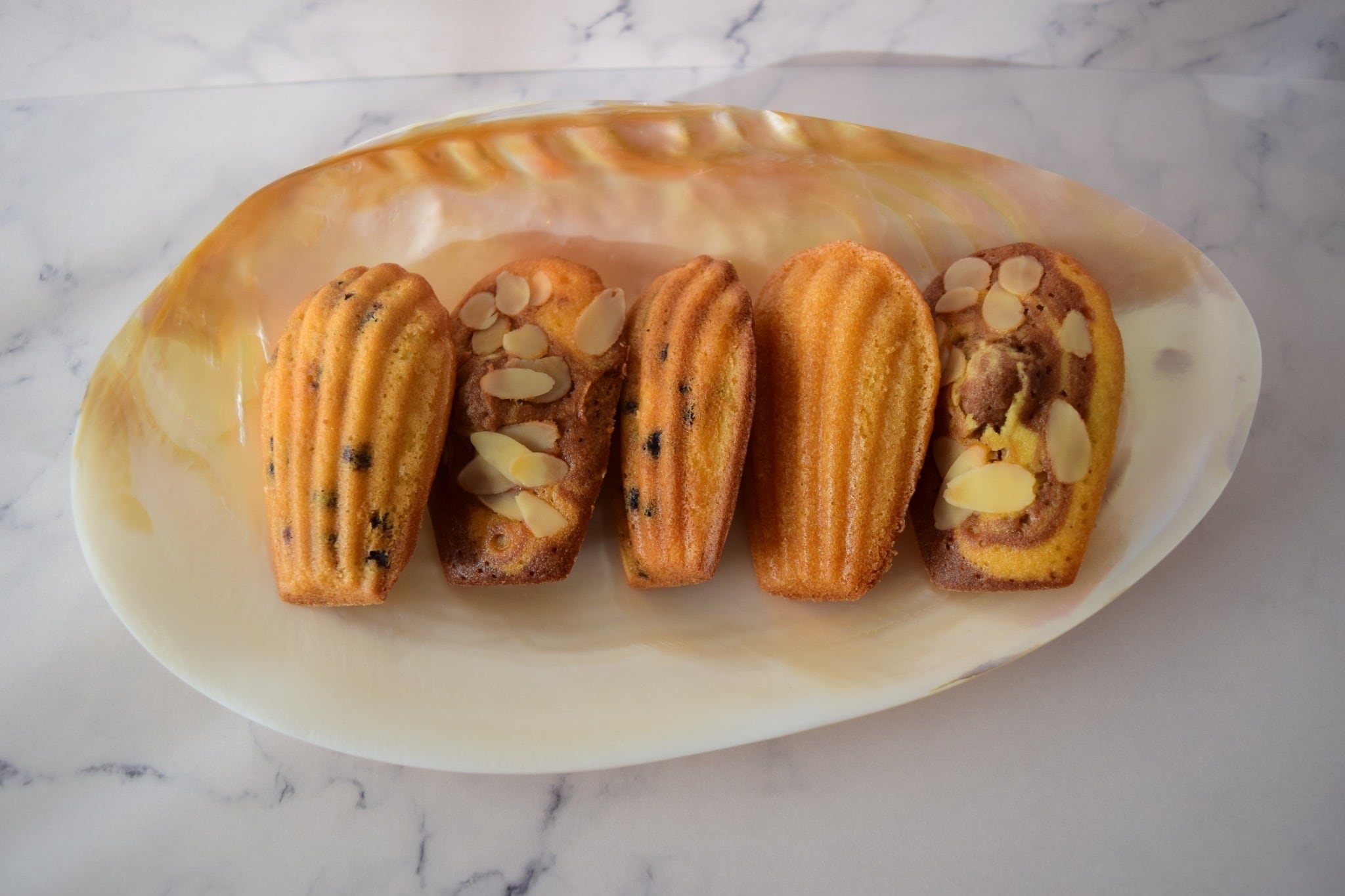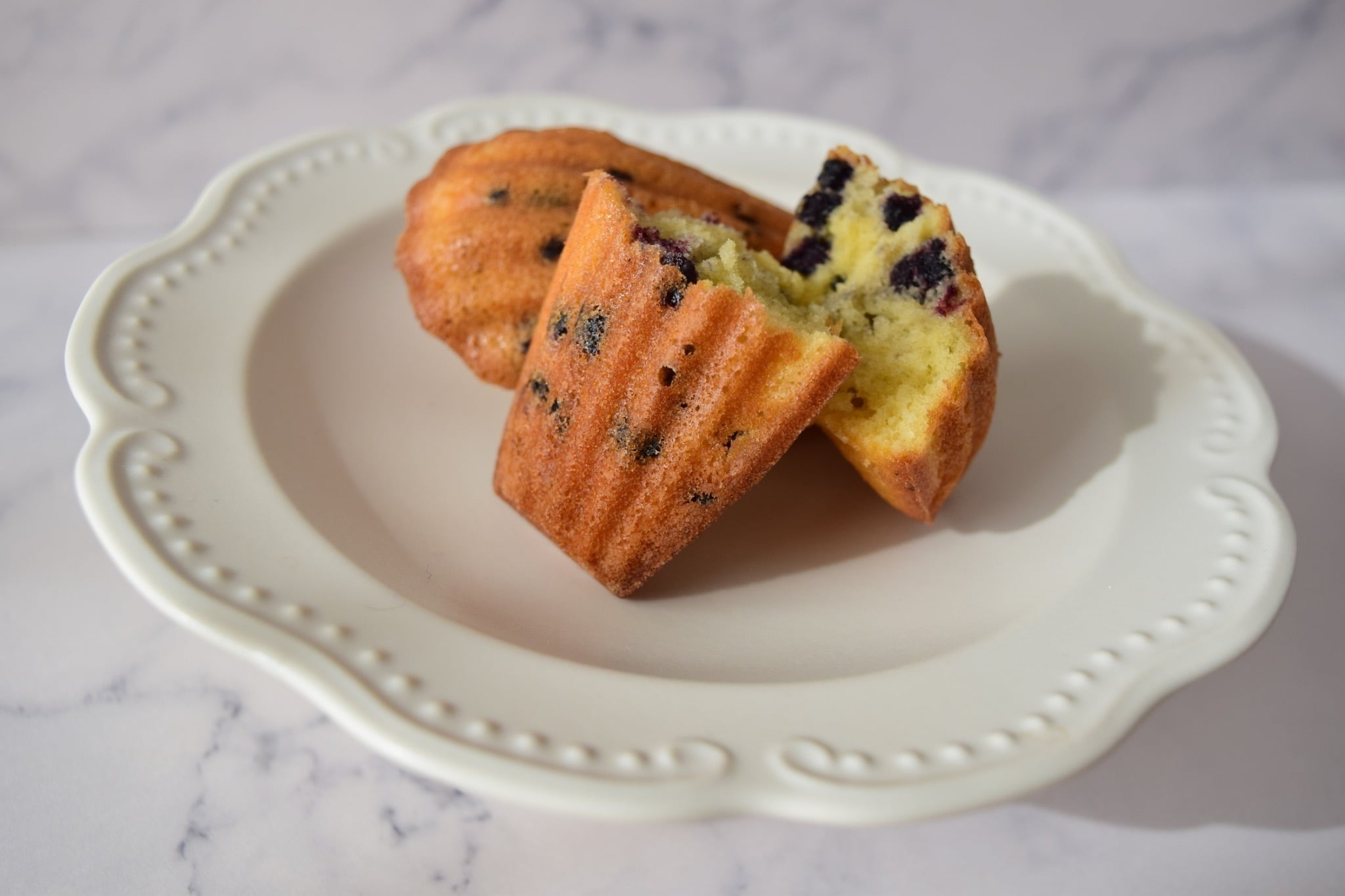 バター、卵、砂糖、小麦粉、アーモンドプードル、きな粉、黒蜜、ブルーベリー、ココアパウダー、スライスアーモンドなど